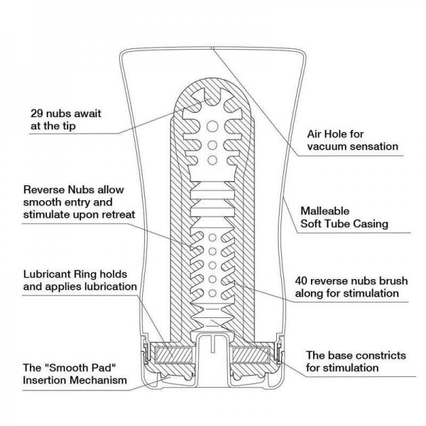 Выпол­нен мастур­ба­тор из неж­нейшего эла­стомера. По так­тиль­ным ощуще­ниям неве­ро­ятно неж­ный, мяг­кий, бар­ха­ти­стый! Внут­рен­ний рельеф с 70 уси­ками, 40 из кото­рых лас­кают ствол, а 30 головку,  не оста­вит без внима­ния ни один мил­лиметр поло­вого члена!